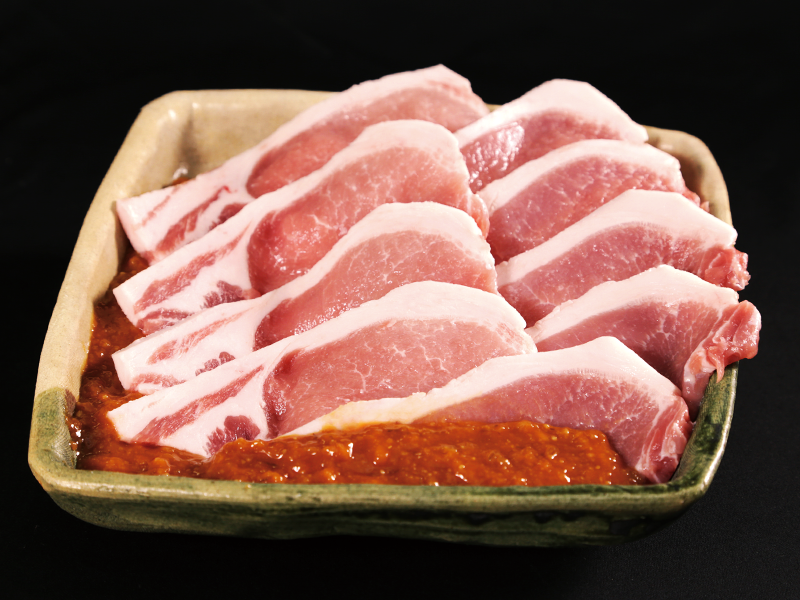柔らかく上質な肉質と旨味・甘味のある脂が特徴の「米澤豚一番育ち」に豚肉の良さを最大限に引き出す金山寺みそを合わせた逸品です。この商品は漬かり時間でお味が変わります!